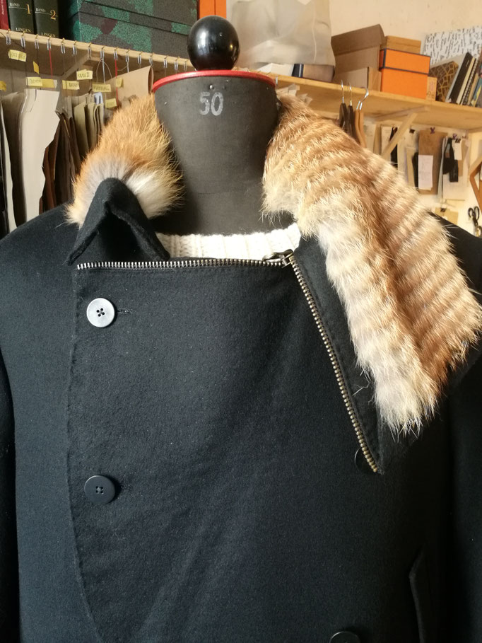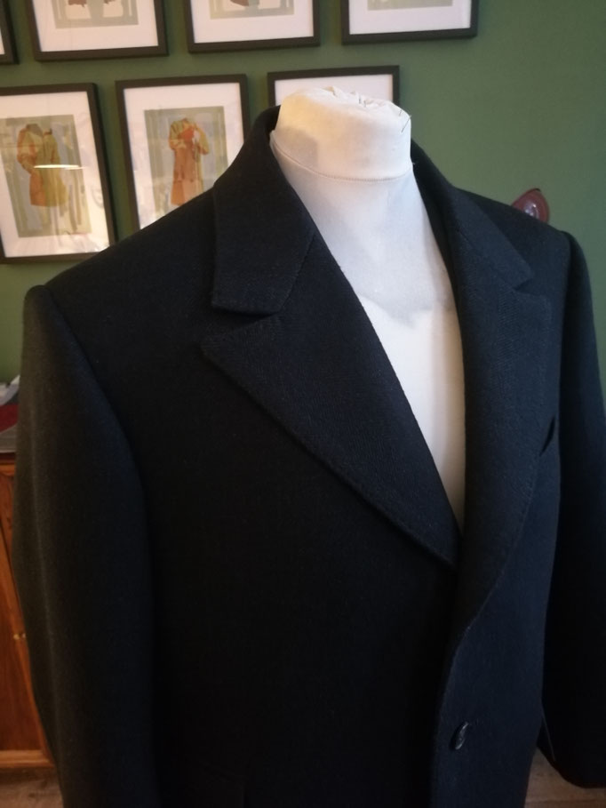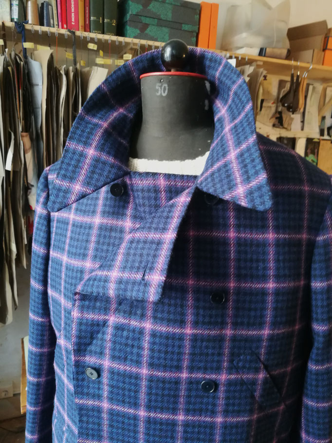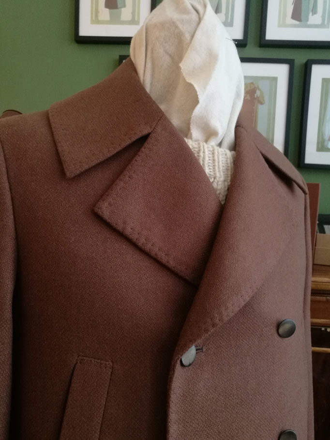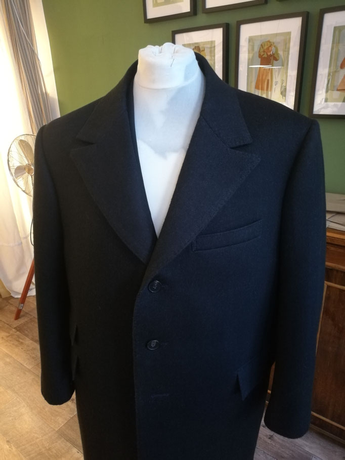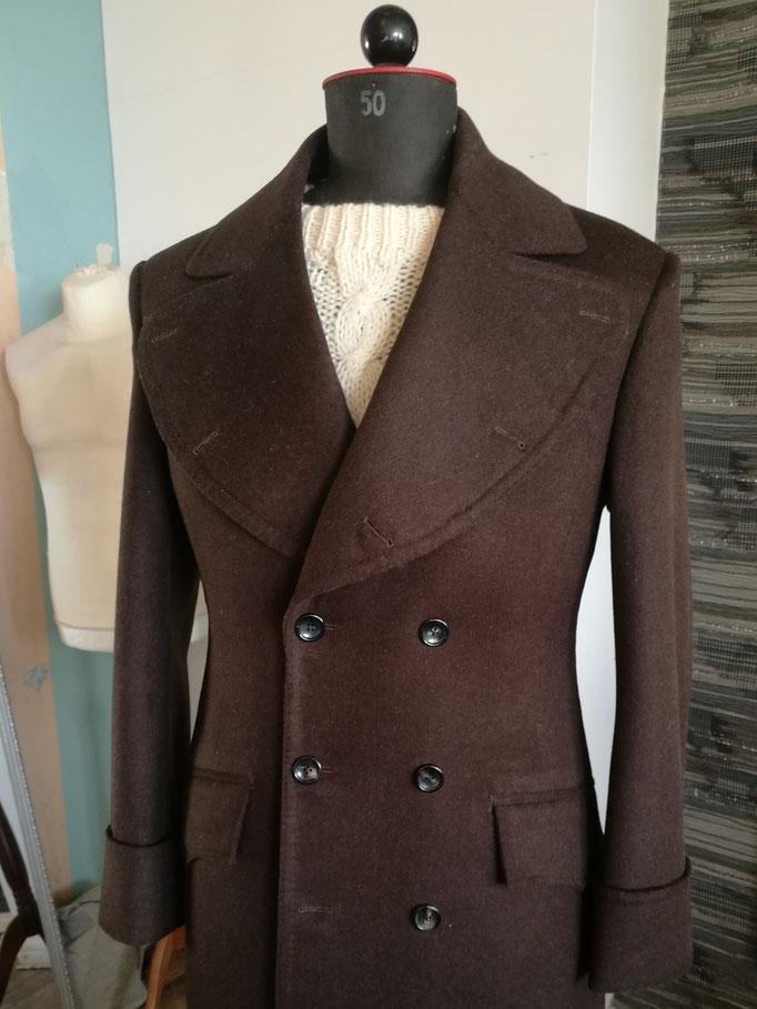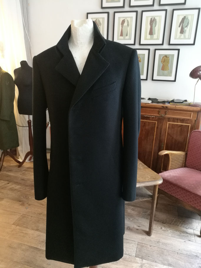 whims of mens or womens current fashion trends. Because a garment should fit the wearer, not the other way round. This goes for a piece off the rack and even more for a bespoke tailored overcoat,